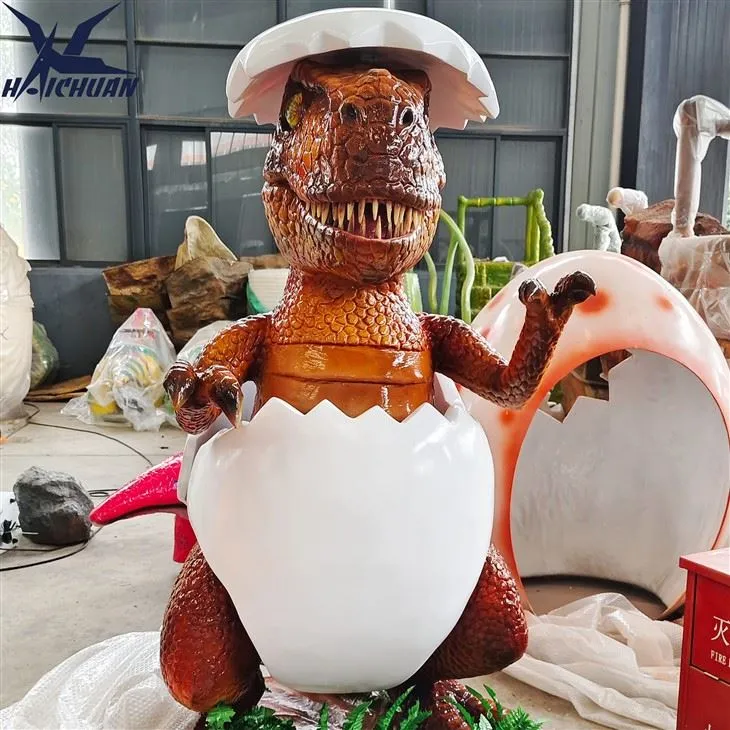 Это копия детеныша динозавра, когда он вылезает из своей оболочки, с головой и ногами, прорывающимися сквозь оболочку. Он издавал звук настоящего динозавра и двигал головой и руками, как ребенок. Разве не было бы привлекательно иметь такого милого аниматронного детеныша динозавра на своем пороге?